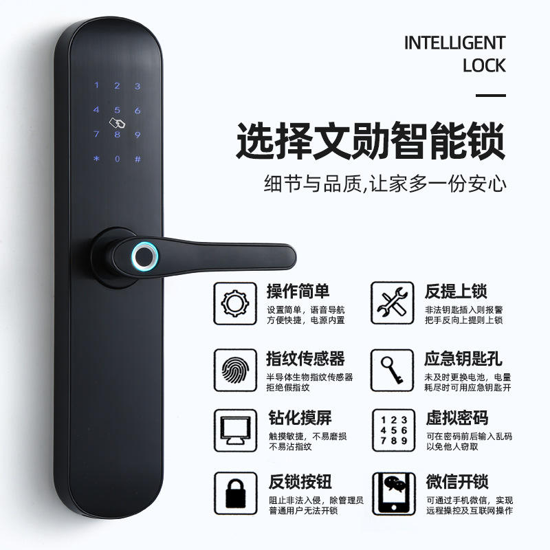 กุญแจล็อคประตูอัจฉริยะ Wenxun รุ่น S011M ระบบสแกนลายนิ้วมือ ควบคุมผ่านแอปพลิเคชัน สำหรับประตูไม้ในอพาร์ตเมนต์
