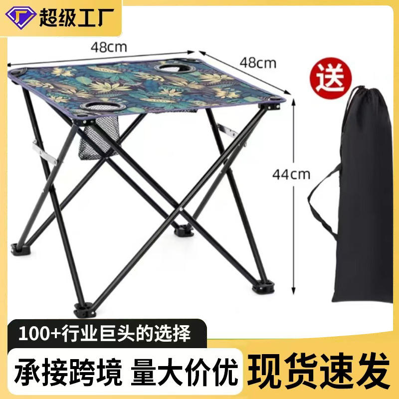 โต๊ะพับกลางแจ้งเวนยาน โต๊ะปิกนิกพกพาแบบสี่เหลี่ยมพร้อมที่วางแก้ว ลายใบเมเปิ้ล สีดำ สีกากี