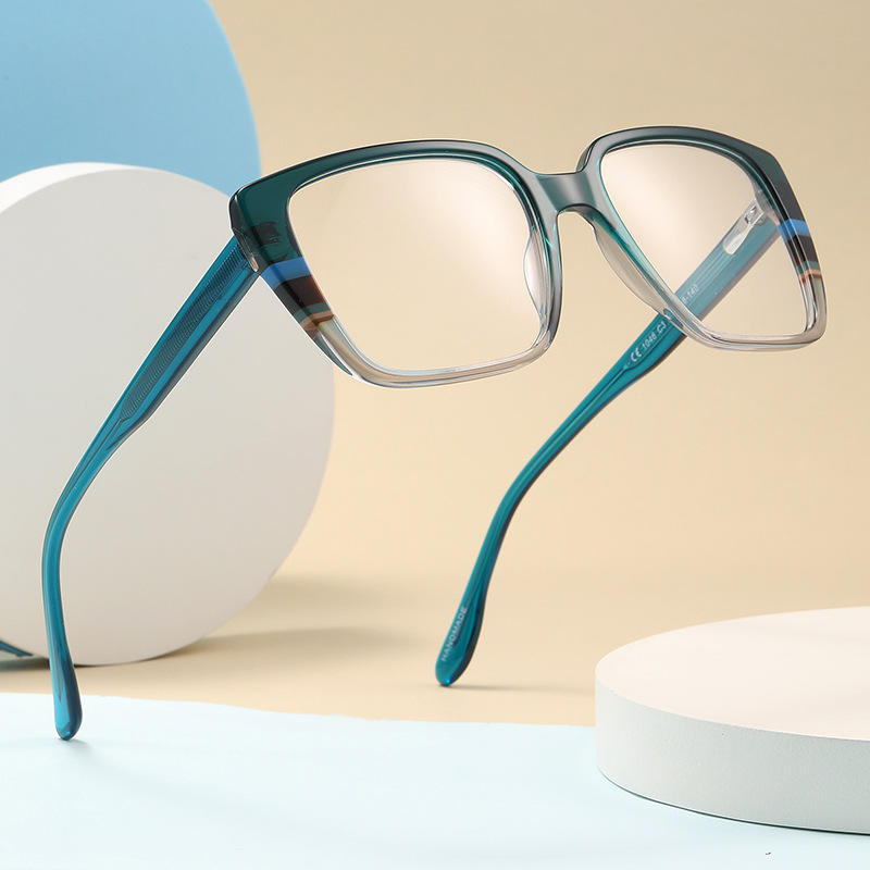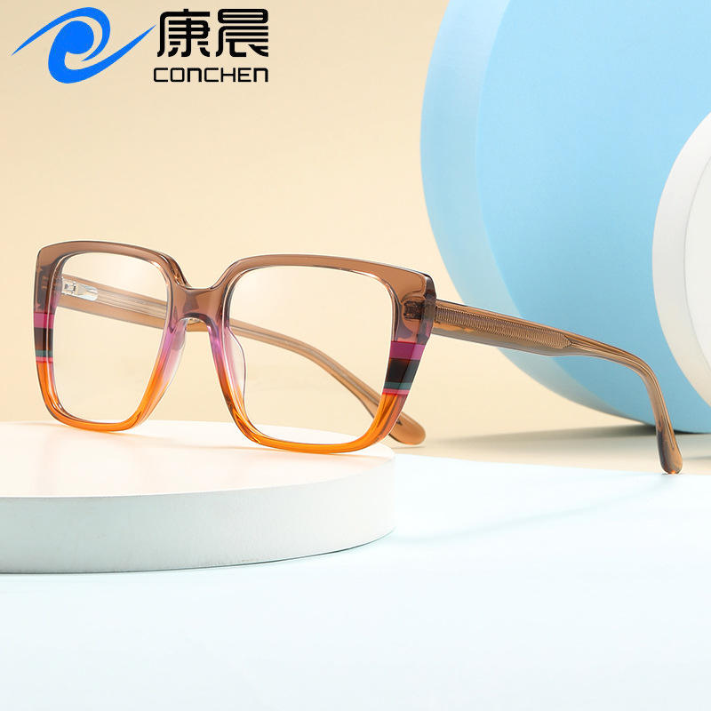 กรอบแว่นตาอะซิเตททรงสี่เหลี่ยมแบบเต็มกรอบจากเวินโจว ป้องกันการลื่นไถล เลนส์แบบไม่มีค่าสายตา ดีไซน์ไล่เฉดสี สำหรับทั้งชายและหญิง