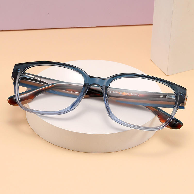 กรอบแว่นตาอะซิเตททรงสี่เหลี่ยมเวินโจว แบบเต็มกรอบ กันลื่น เลนส์ใส รุ่น 1076 สำหรับทุกเพศ