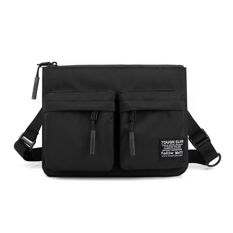 กระเป๋าสะพายข้างผู้ชายวีพาวเวอร์กระเป๋าคาดหน้าอกไนลอนสีดำ แฟชั่นสำหรับใช้ในชีวิตประจำวัน ฤดูร้อน 2023