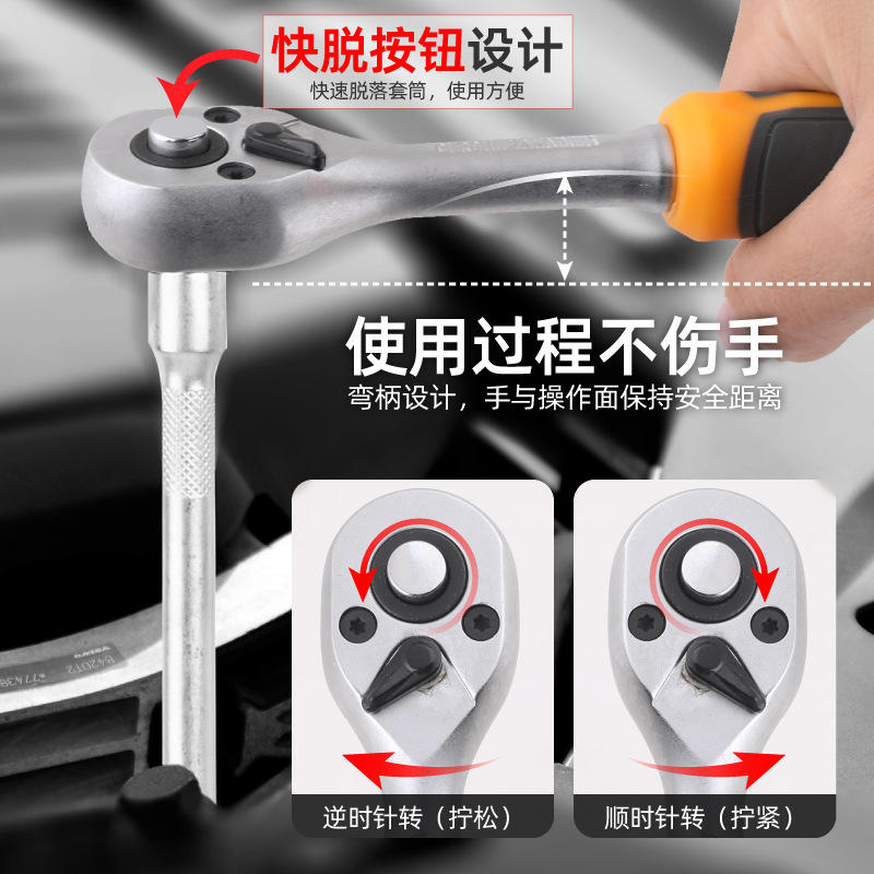 ชุดประแจวงล้อเวรา 1/4 นิ้ว พร้อมก้านต่อและด้ามจับซ็อกเก็ต ชุบโครเมียม เหล็กโครเมียมวาเนเดียม เครื่องมือซ่อมรถยนต์