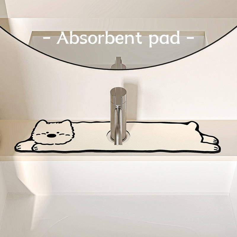 แผ่นรองกันน้ำรูปสัตว์เลี้ยงลายการ์ตูน West Highlands Puppy Alien สำหรับอ่างล้างจาน/ห้องน้ำ ผ้าเทคโนโลยีดูดซับน้ำ รูปทรงตามสั่ง แห้งเร็ว