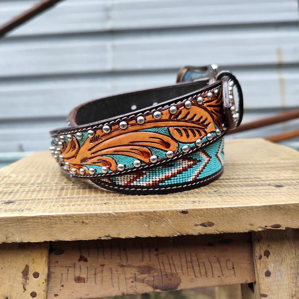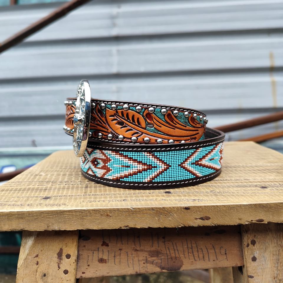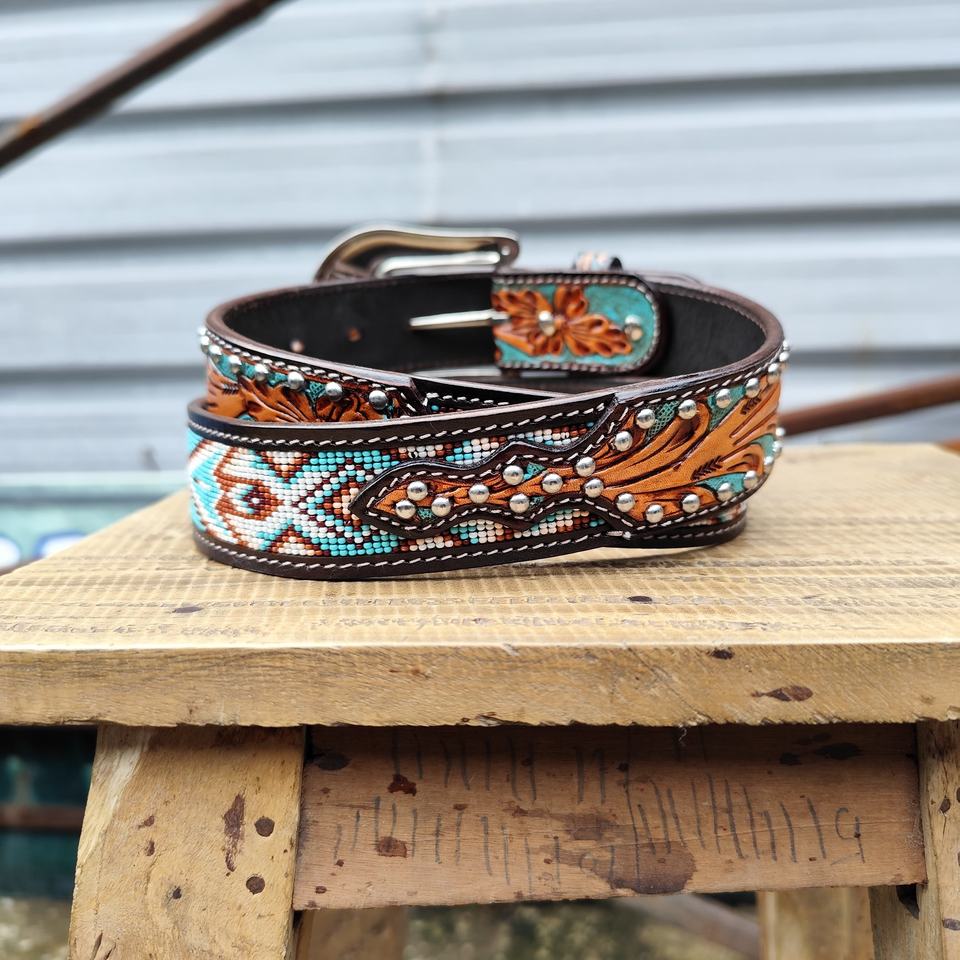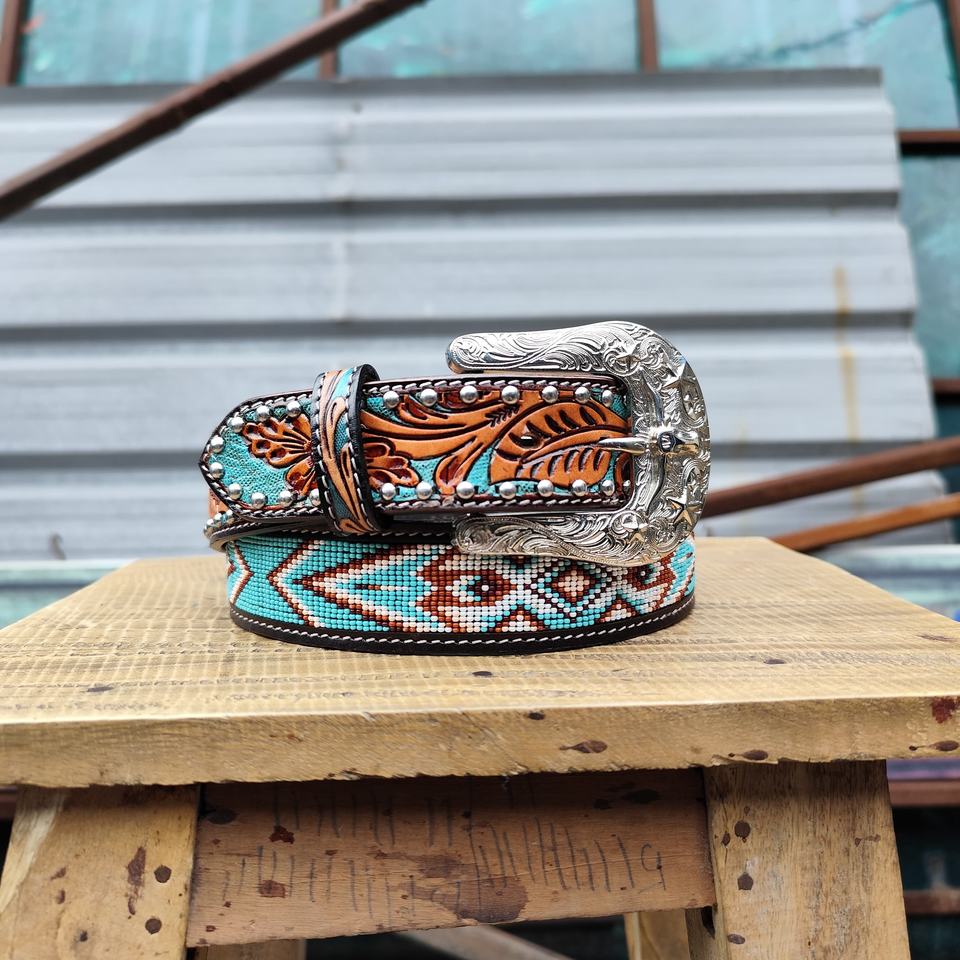เข็มขัดหนังวัวสไตล์วินเทจแบบตะวันตก ประดับลูกปัด สั่งทำพิเศษ พร้อมลวดลายสลักอย่างประณีต หัวเข็มขัดเป็นมิตรกับสิ่งแวดล้อมและแข็งแรงทนทาน เหมาะสำหรับสวมใส่ในงานฟาร์ม
