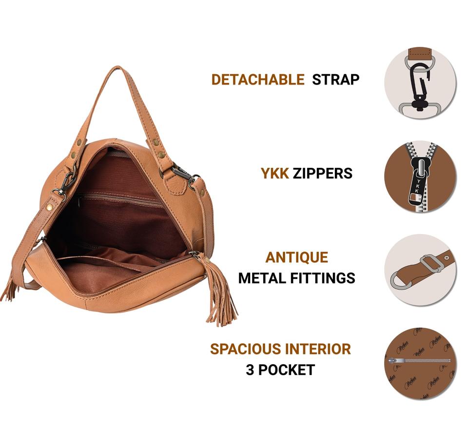 กระเป๋าโรงอาหารหนังวัวแท้ดีไซน์เนอร์สไตล์ตะวันตกทำมือสำหรับผู้หญิงมีสายรัดปรับได้และมีซิปปิด