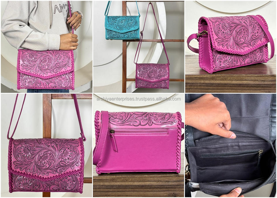 Product name:Hand Tooled Leather Crossbody Bag