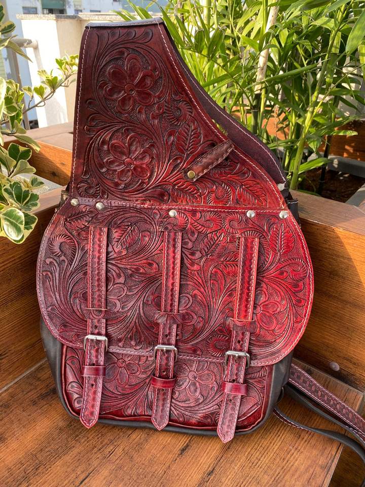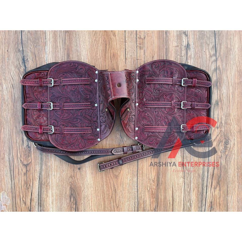 กระเป๋าแซดเดิลสไตล์ตะวันตก & กระเป๋าหนังแท้สลักลายดอกไม้สำหรับใส่ม้า