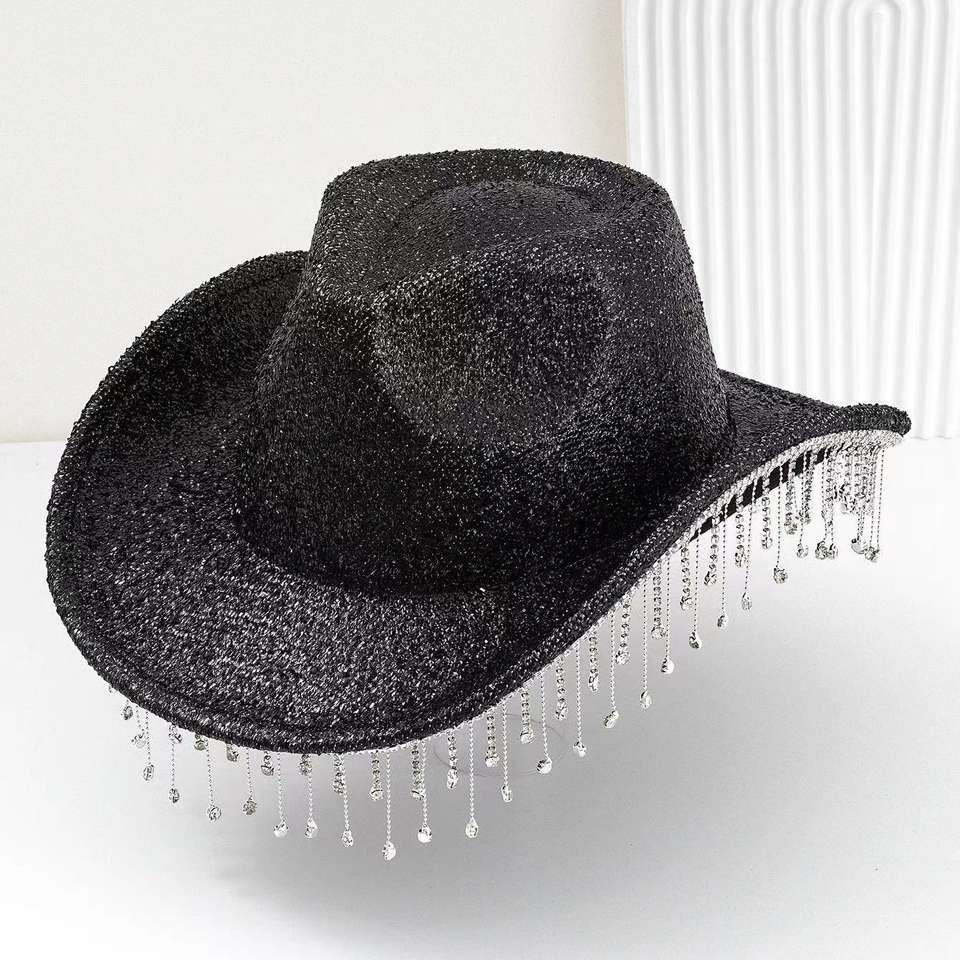 หมวกคาวบอยตะวันตก หมวกคาวเกิร์ลประดับพู่คริสตัล หมวกปาร์ตี้ ชุดคอสตูมสำหรับผู้หญิง ผู้ชาย งานแต่งงาน งานดนตรี ปาร์ตี้คอสตูม