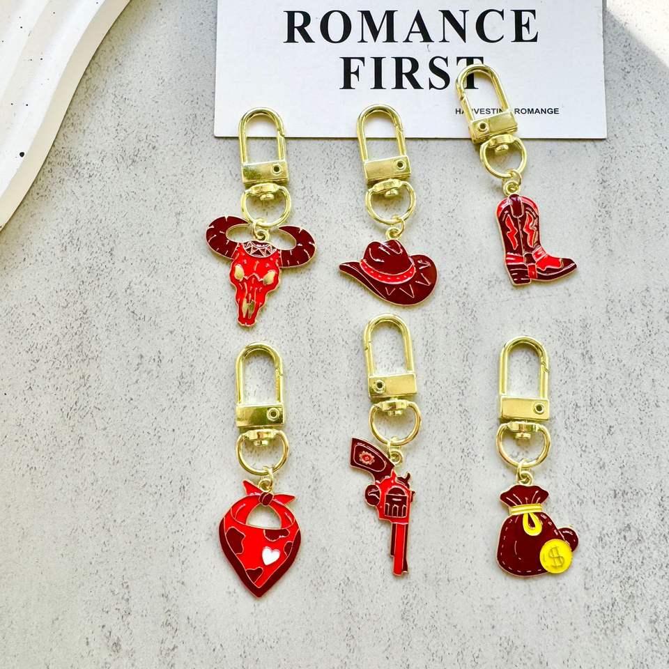 พวงกุญแจโลหะรูปคาวบอยตะวันตก สีแดงทอง ลายหัวกระทิง พร้อมรองเท้าบูท ดีไซน์สร้างสรรค์ น้ำหนักเบา สำหรับห้อยกระเป๋า