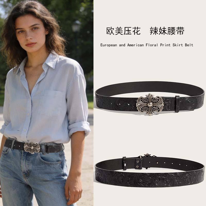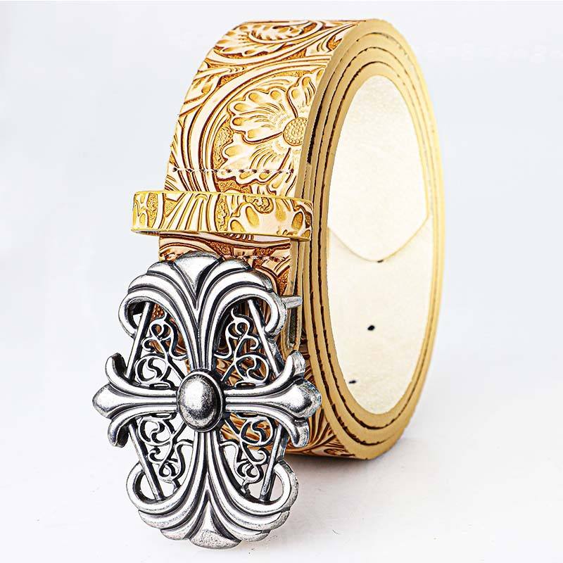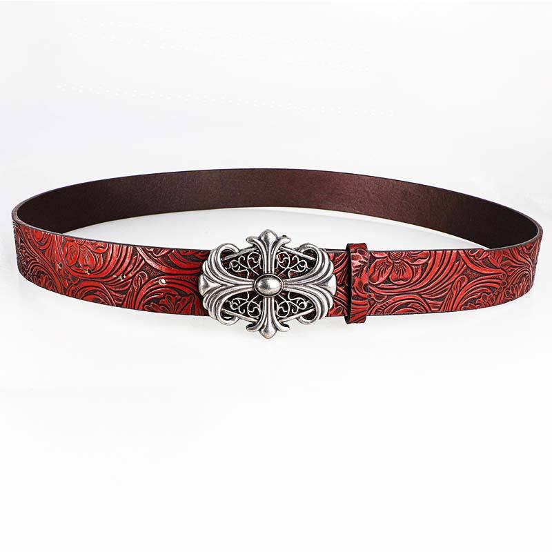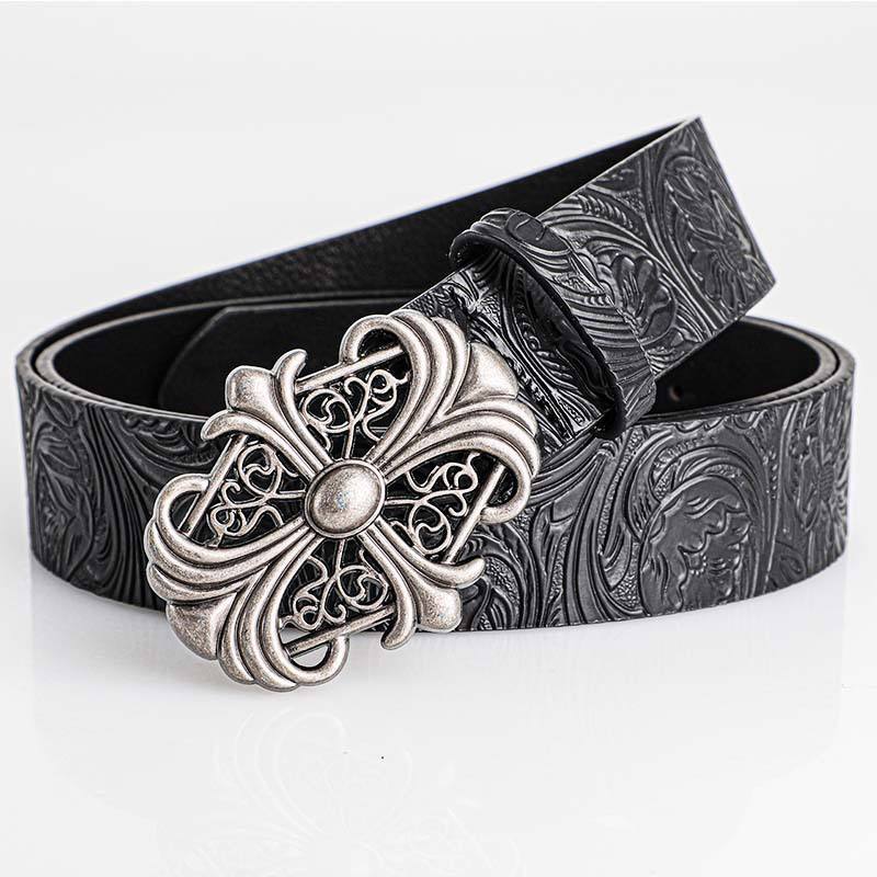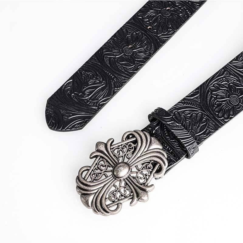 หัวเข็มขัดลายหนังวัวสไตล์คาวบอยตะวันตก ประดับเงินรูปไม้กางเขน ลวดลายดอกไม้ ทนทาน ดีไซน์วินเทจย้อนยุค สำหรับผู้ชายและผู้หญิง สวมใส่สบายๆ