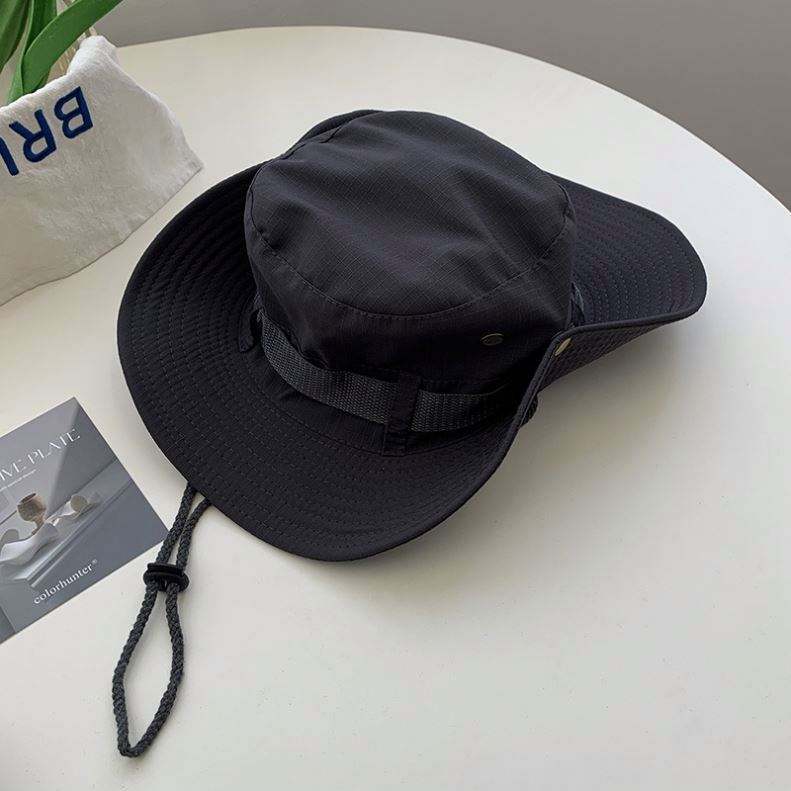 หมวกทรงถังใช้ได้ทุกเพศสไตล์คาวบอยตะวันตกพร้อมเชือกสำหรับกันแดดหมวกปีนเขาตกปลา