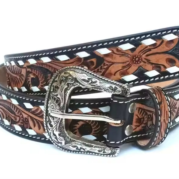 เข็มขัดหนังคาวเกิร์ลลายดอกไม้สไตล์ตะวันตกสำหรับเย็บเครื่องมือและโค้งแบบโบราณวาดด้วยมือ