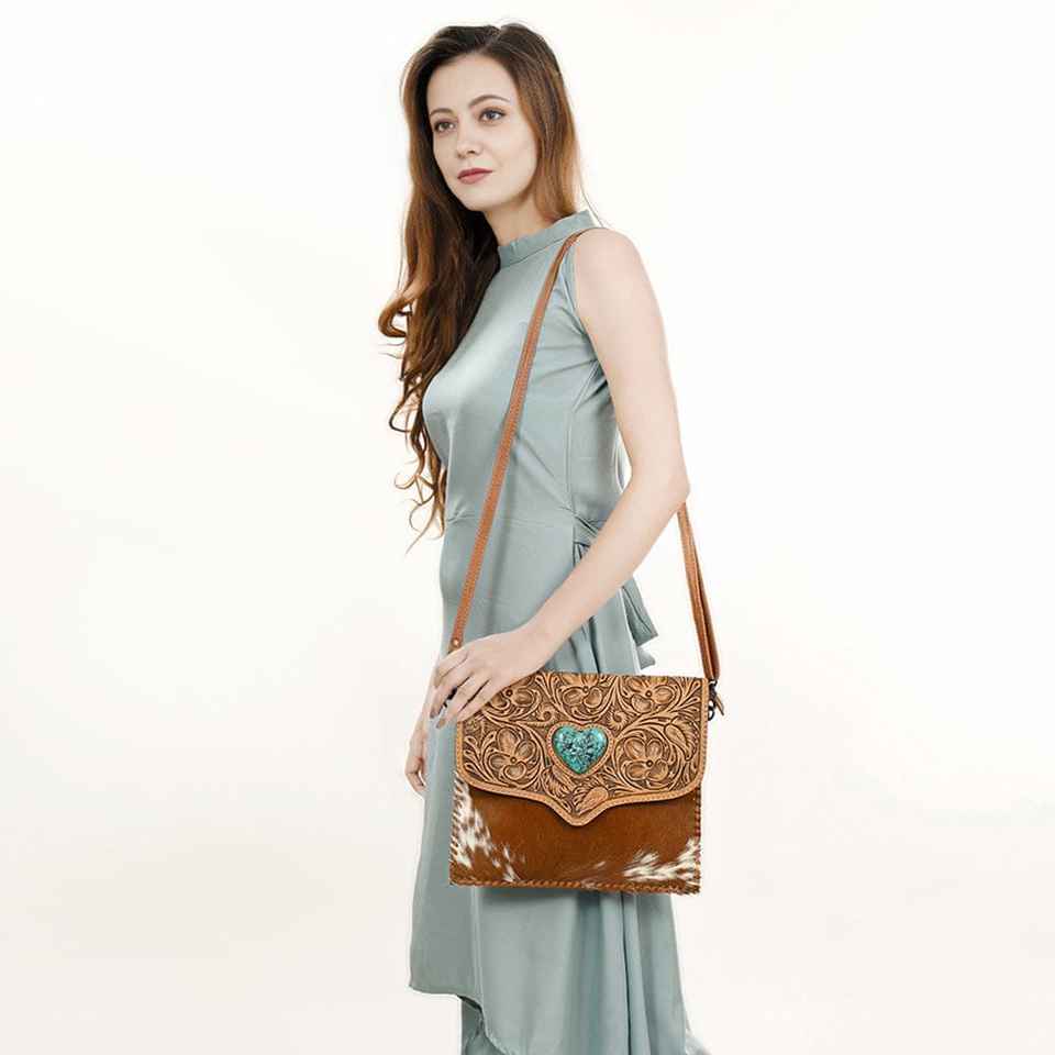 กระเป๋าสะพายข้างหนังแท้สไตล์โบฮีเมียนวินเทจ ปิดด้วยซิป ทำด้วยมือ เป็นมิตรกับสิ่งแวดล้อม ลายดอกไม้และสัตว์ แฟชั่น