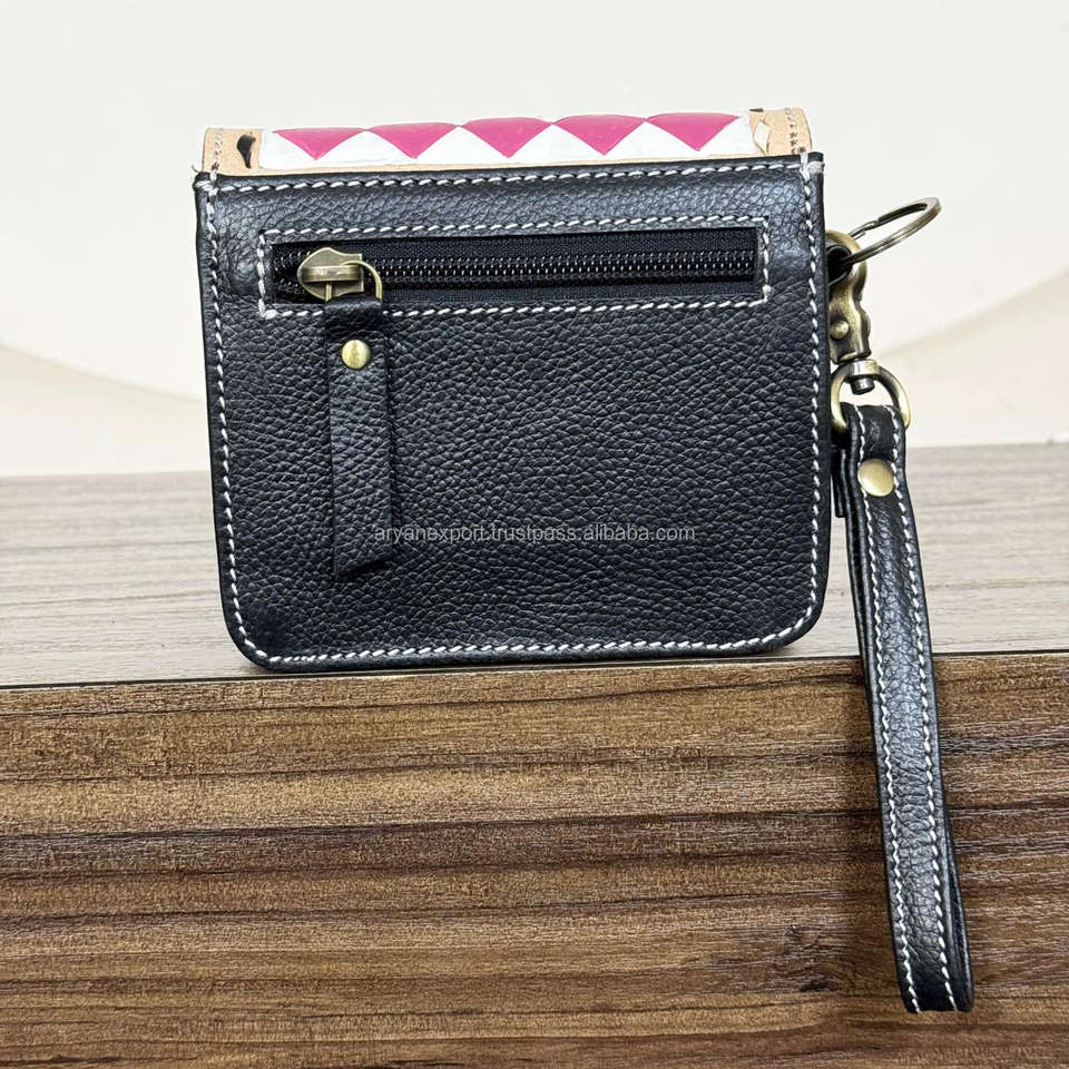 กระเป๋าใส่เหรียญหนังแท้ลายตารางหมากรุกสำหรับผู้หญิง ดีไซน์แบบตะวันตก จุของได้เยอะ มีช่องใส่บัตรหลายช่อง
