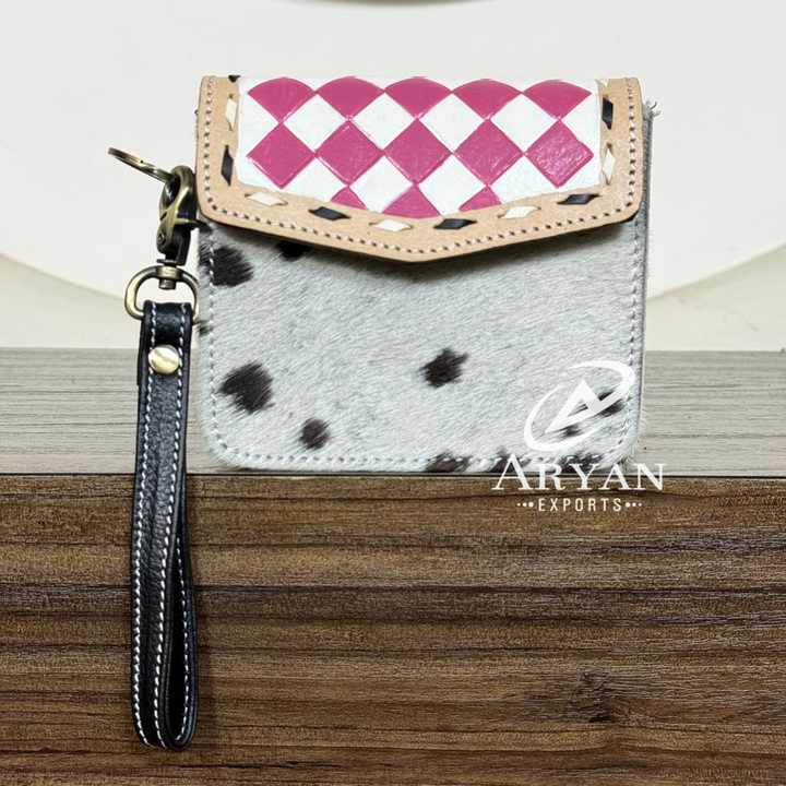 Genuine Cowhide Checkered Leather Coin Purse