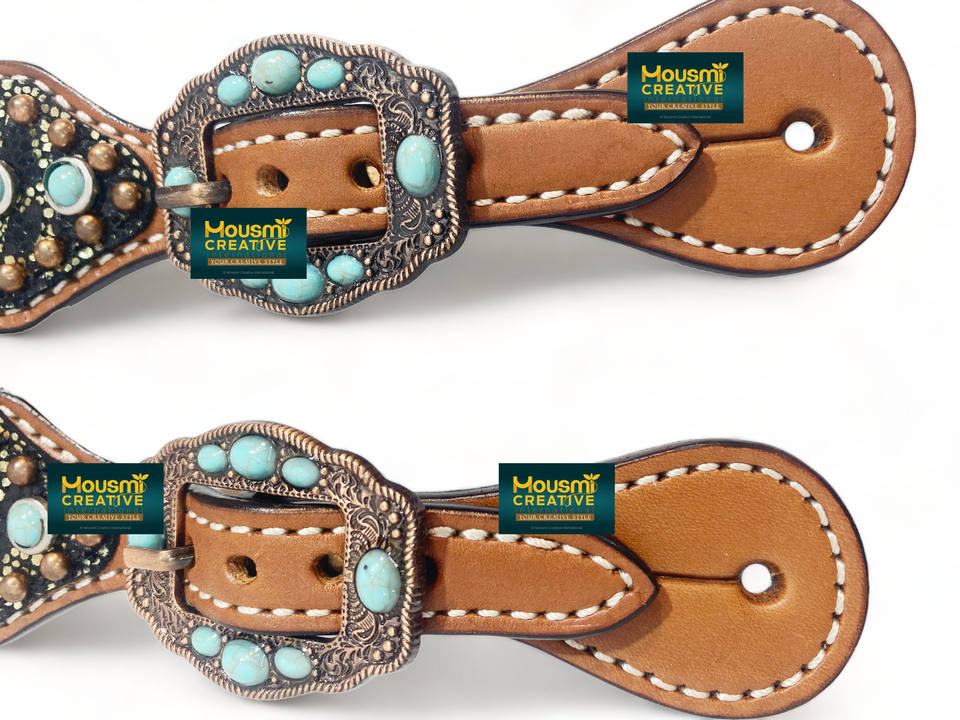 สายหนังงูโฮโลแกรมขี่ม้าแบบตะวันตกตกแต่งด้วยพลอยสีเทอร์ควอยซ์หลายดีไซน์สำหรับผู้หญิงขี่ม้า