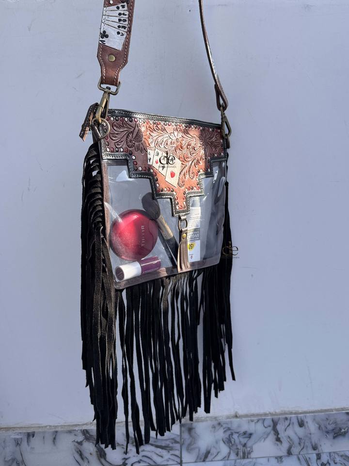 ขอบตะวันตกใสใสกระเป๋าสไตล์มือเครื่องมือแกะสลักกระเป๋าหนังหลายใช้กระเป๋าหนังสําหรับผู้หญิงหลายใช้