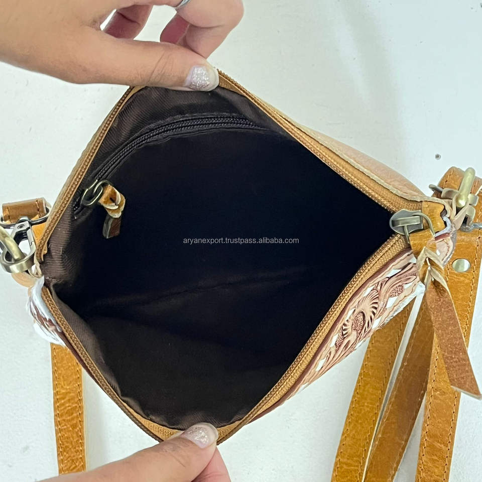 ชื่อสินค้า:กระเป๋าสะพายข้างหนังแท้ลายดอกไม้ทำมือ