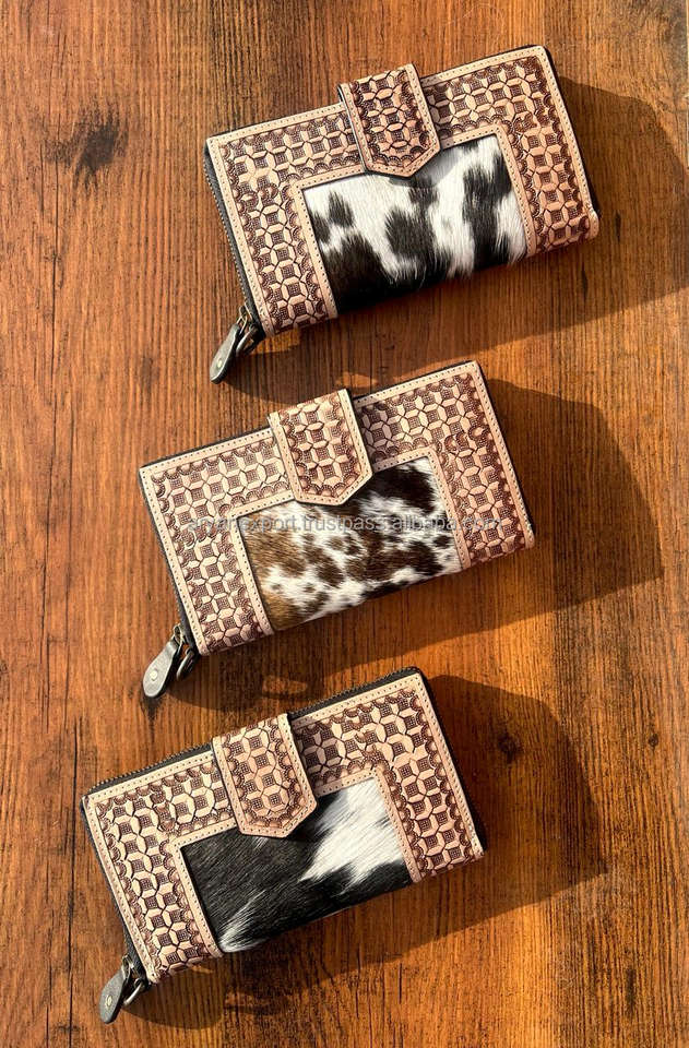 Product Name:Hair On Tooled Leather Wristlet Wallet