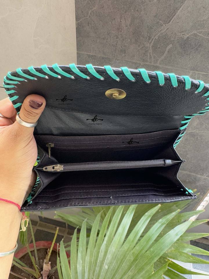 เคสโทรศัพท์คลัทช์แกะสลักมือตะวันตกที่มีดีไซน์สีเทอร์ควอยซ์ที่มีเอกลักษณ์กระเป๋าสตางค์หนังที่มีสไตล์หลากหลาย