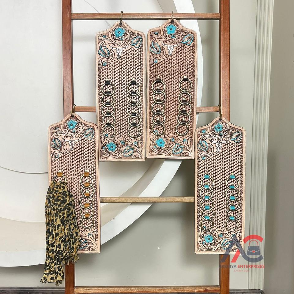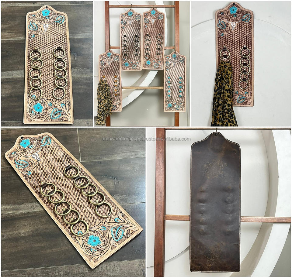ที่ใส่ผ้าพันคอหนังวัวลายดอกไม้สไตล์ตะวันตก พร้อมห่วงโลหะ ดีไซน์ทนทานสำหรับคาวบอยและคาวเกิร์ล