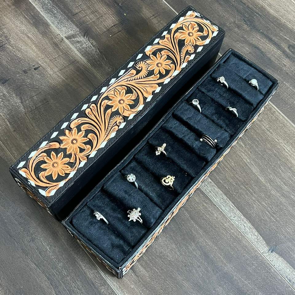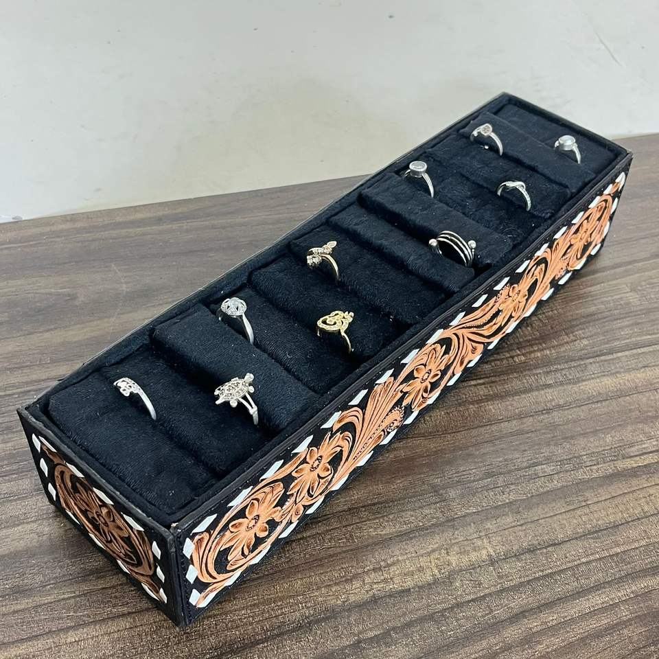 กล่องแสดงแหวนหนังแท้อุปกรณ์ทำมือชื่อผลิตภัณฑ์