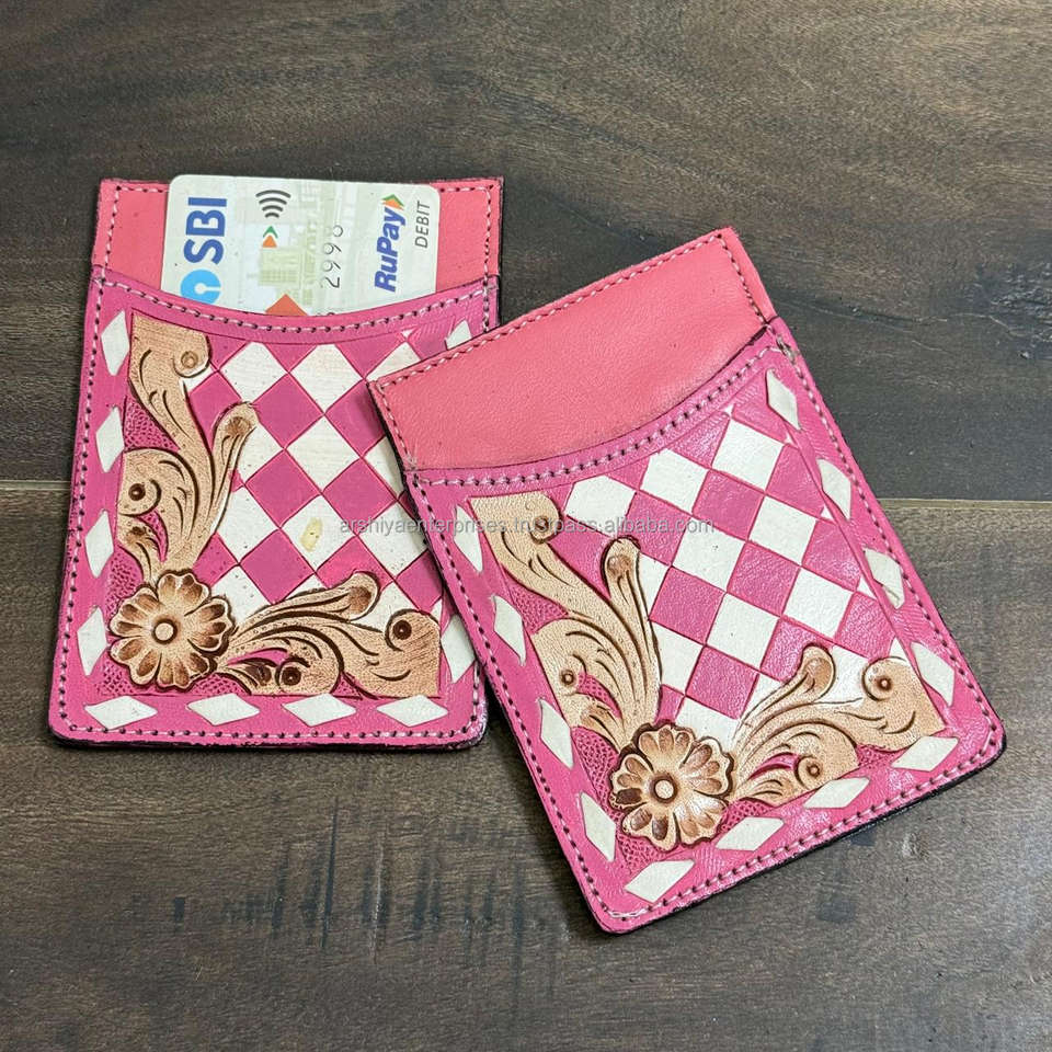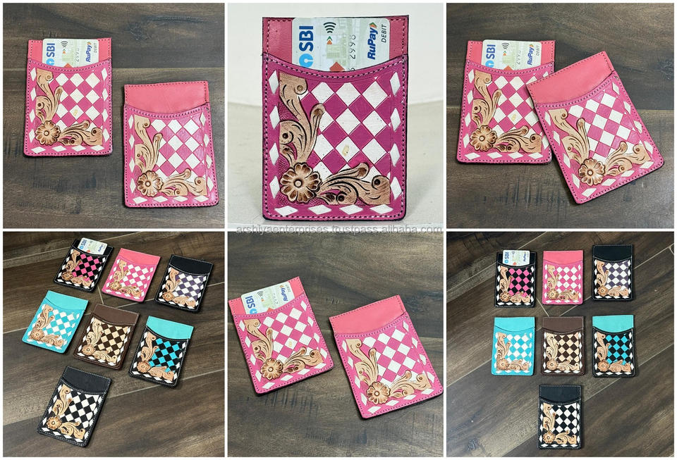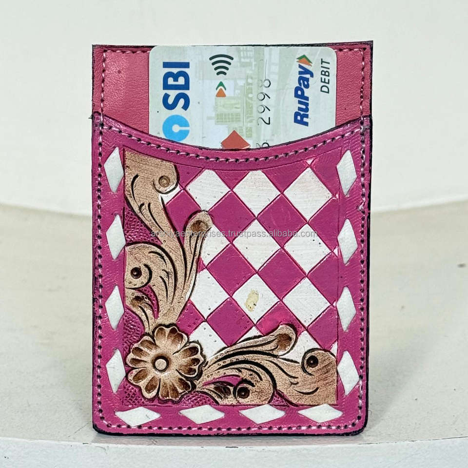 Type:Hand Tooled Checkered Leather Credit Card Holder Wallet