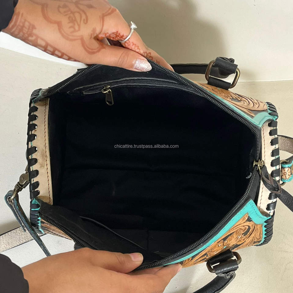 กระเป๋าเดินทางขนาดเล็กทำจากหนังแท้ลายสานด้วยมือ