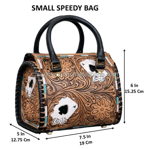 กระเป๋าหนังแท้สไตล์ตะวันตกแบบมินิสปีดดี้ ลายลูกเต๋าเอซออฟสเปดส์ สำหรับผู้หญิง กระเป๋าถือทรงกระบอกหนังวัวคุณภาพพรีเมียม