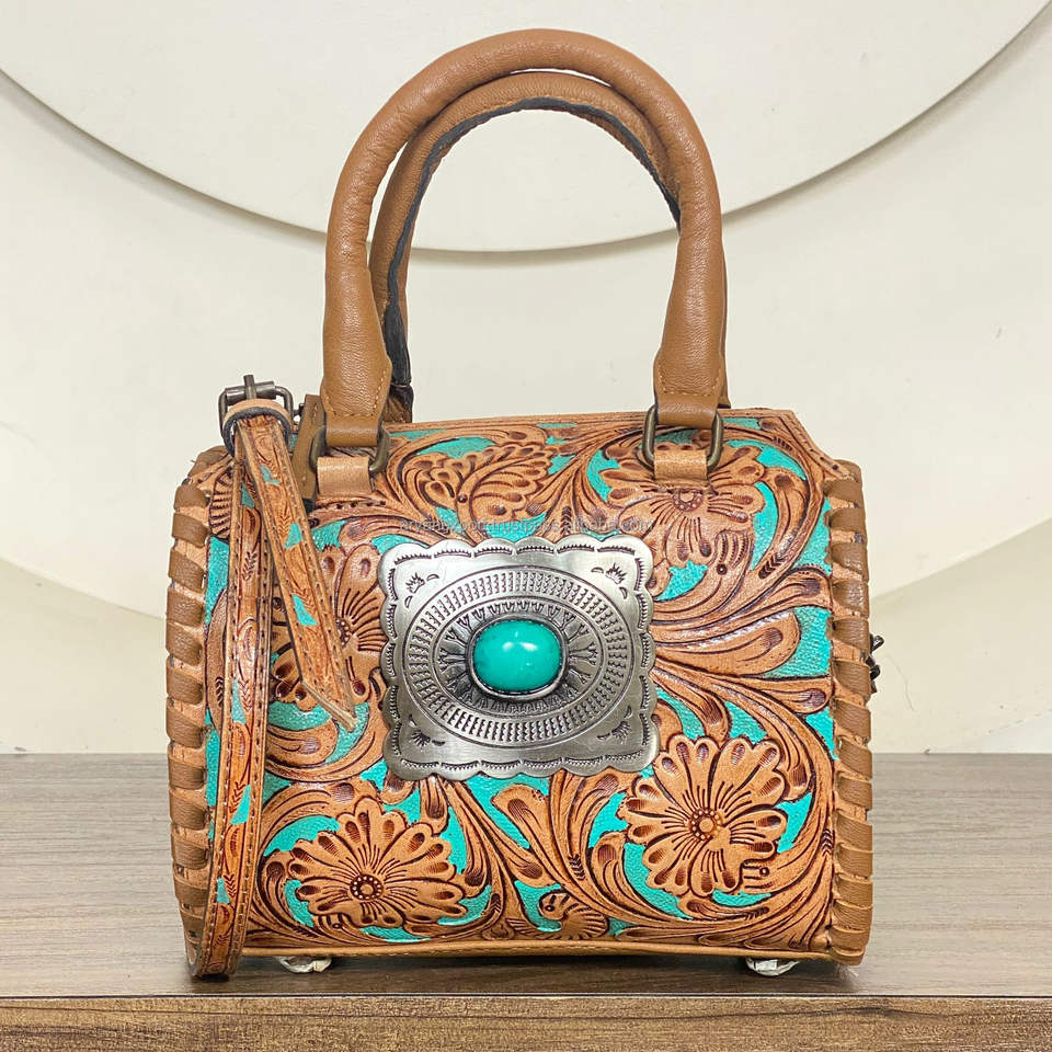 กระเป๋าหนังแท้สไตล์ตะวันตก งานแฮนด์เมด ทรงกระบอก ขนาดเล็ก สำหรับผู้หญิง ใช้ได้ทุกวัน เหมาะสำหรับเดินทางและใช้งานทั่วไป