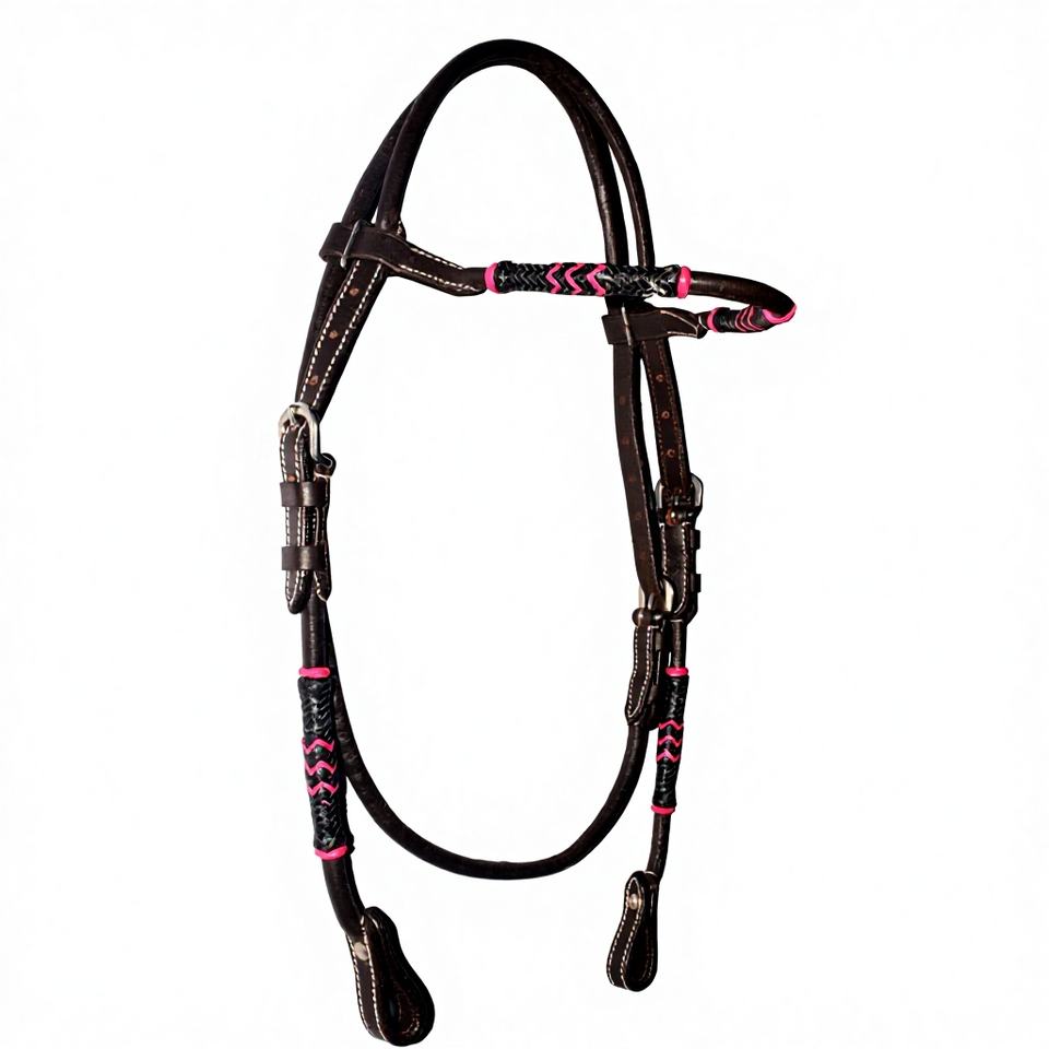 บังเหียนม้าแบบตะวันตก ปรับได้ ทำด้วยมือจากหนังแท้ สีน้ำตาล หนังดิบ สายคาดหน้าผากแบบตรง หนังสีน้ำตาล 88