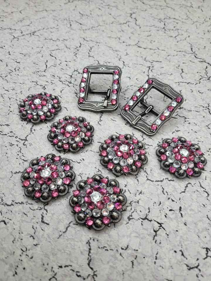 Conchos-ทั้งหมด-6ชิ้น (3คู่)/หัวเข็มขัด-รวม-2ชิ้น (1คู่)