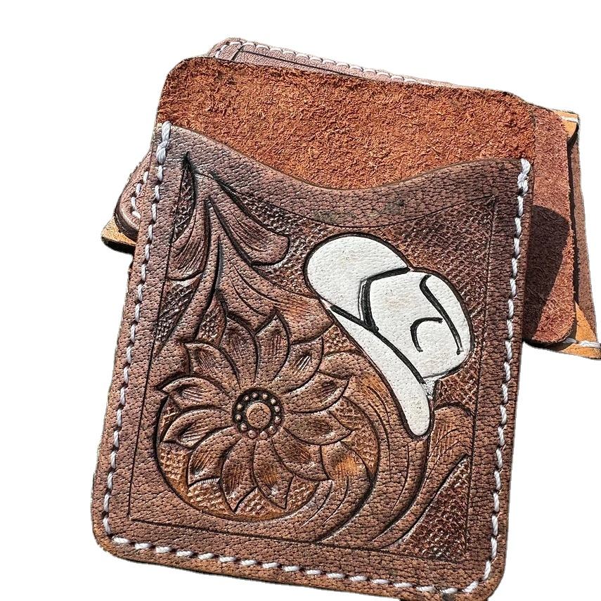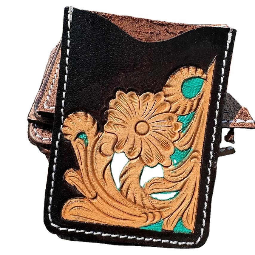 ที่ใส่บัตรเครดิตหนังแท้สไตล์ตะวันตก ป้องกัน RFID งานฝีมือแกะสลักด้วยมือ ดีไซน์ทันสมัยอเนกประสงค์