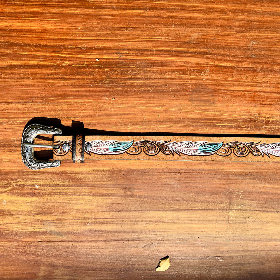 เข็มขัดหนังตะวันตกประดับลูกปัด