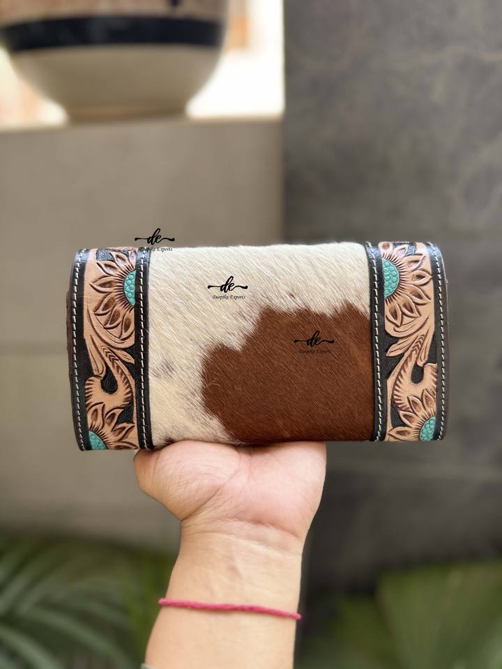 คลัทช์หนังวัวแบบตะวันตกใช้มือแกะสลักแบบเครื่องมือกระเป๋าสตางค์ใช้งานได้หลากหลายออกแบบใหม่เงื้อมมือมีสไตล์สำหรับผู้หญิง