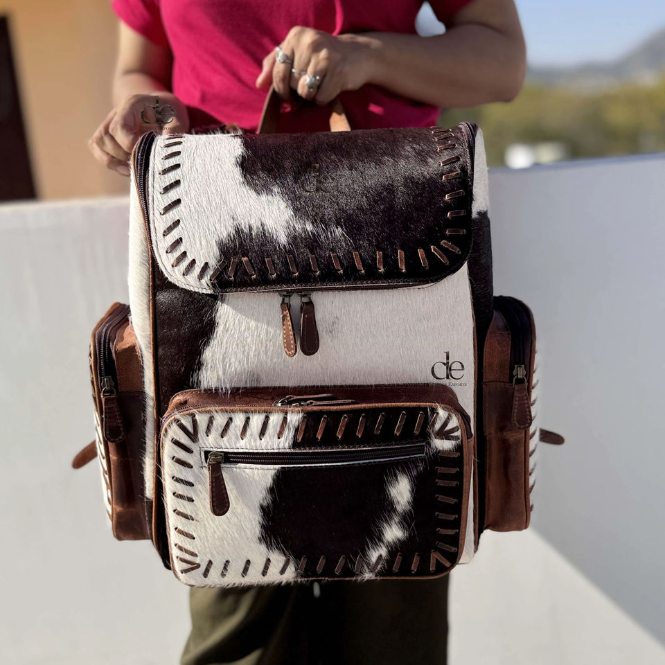 กระเป๋าเป้หนังวัวลายตะวันตก ขนสัตว์แท้ ดีไซน์เก๋ ทันสมัย เหมาะสำหรับนักเรียน กระเป๋าเป้สะพายหลังแบบ unisex กระเป๋าดีไซน์เนอร์สุดพิเศษ