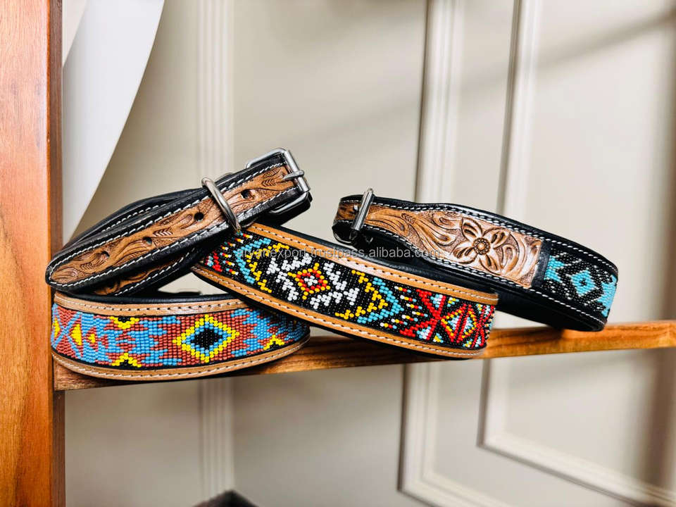 ปลอกคอหนังลูกปัดสำหรับสุนัขปลอกคอสัตว์เลี้ยงหนังแท้แบบตะวันตก2024ใหม่นุ่มทนทานขายส่งสินค้าจำนวนมาก