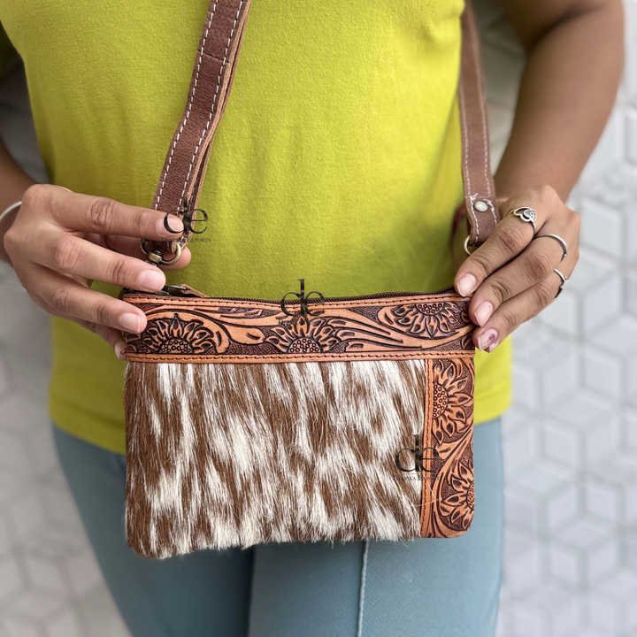 กระเป๋าหนังวัวลายตะวันตก งานแกะสลักด้วยมือ พร้อมพู่หนังสไตล์โบฮีเมียน ขายดี กระเป๋าหนังทำมือสำหรับผู้หญิง