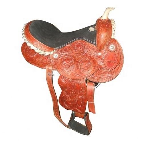 อานม้าแบบตะวันตกสำหรับแข่งขัน ทำจากหนังวัวแท้ ตกแต่งด้วยลายสลักมือ หัวอานหนัก แบบไม่มีโครง สำหรับกระโดดข้ามสิ่งกีดขวาง ฮาร์ดแวร์สแตนเลส