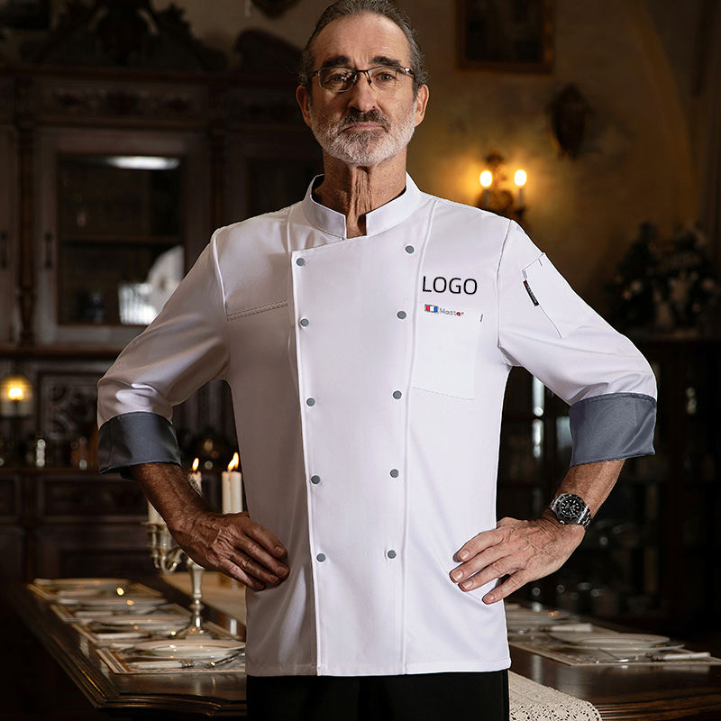 เสื้อทำอาหารร้านอาหารตะวันตกสำหรับผู้หญิงแจ็คเก็ตเชฟแขนสั้นสำหรับผู้ชายเสื้อเชฟสำหรับใส่ทำงานในฤดูร้อน