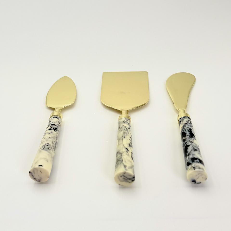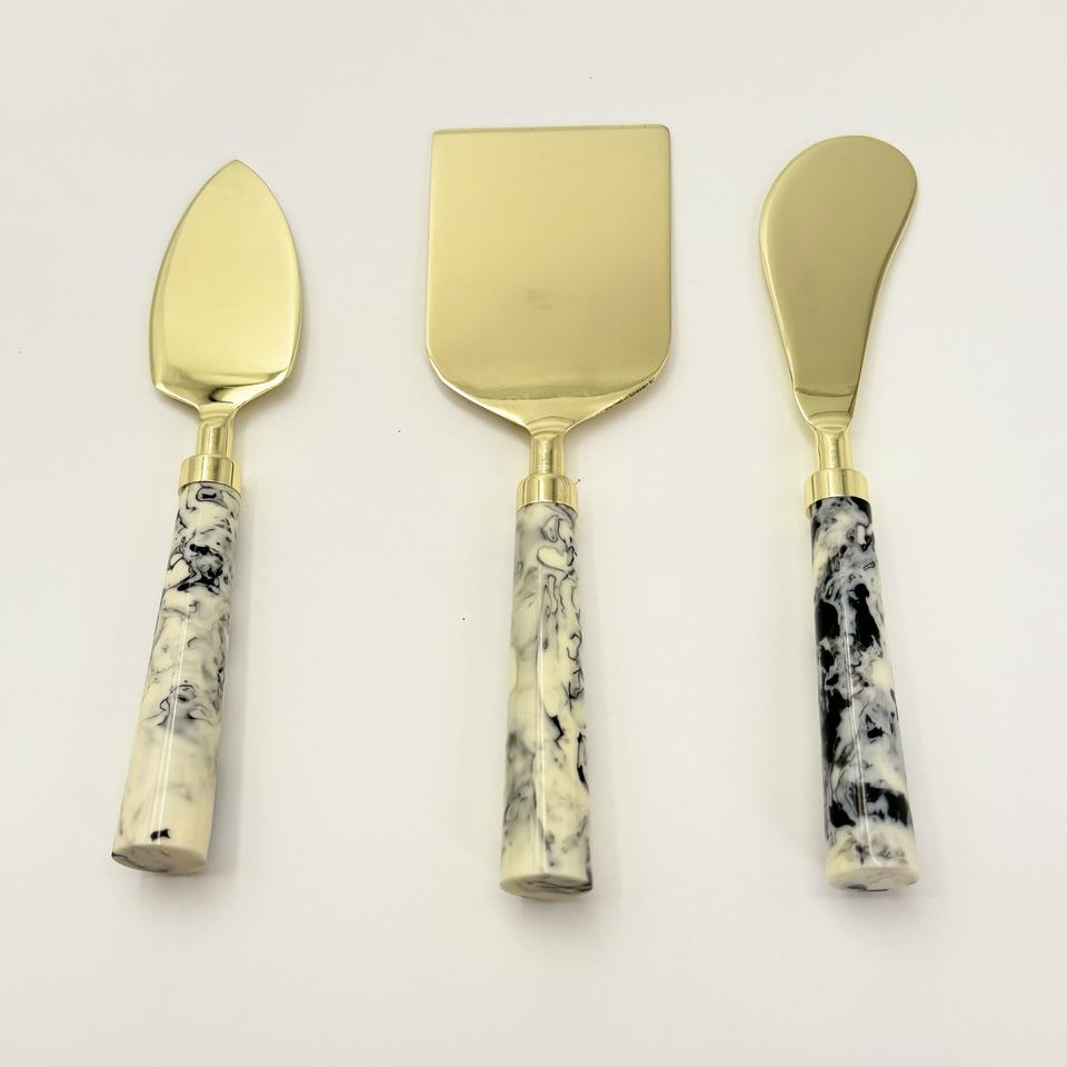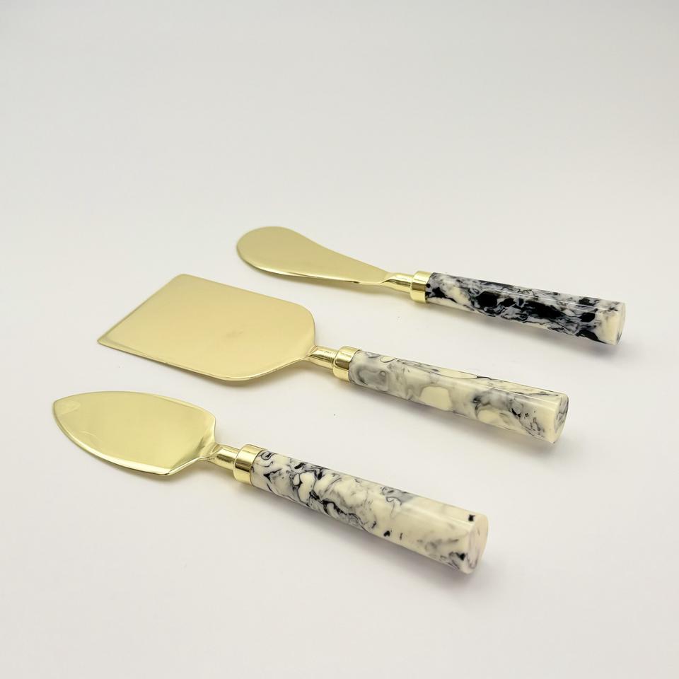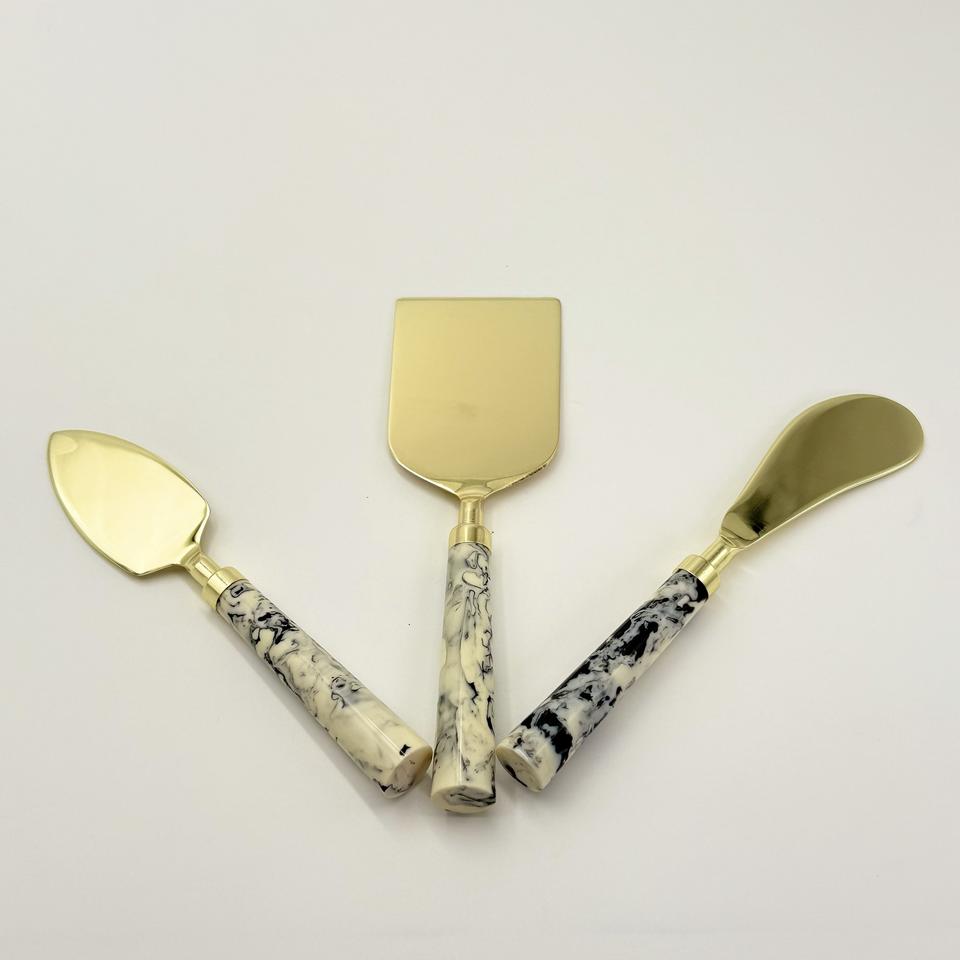 เครื่องมือตัดชีสสแตนเลสแบบตะวันตก ชุบทอง พร้อมด้ามจับเรซิ่น เป็นมิตรกับสิ่งแวดล้อม ปลอดภัยสำหรับเครื่องล้างจาน เหมาะสำหรับใช้ในบ้านและโรงแรม