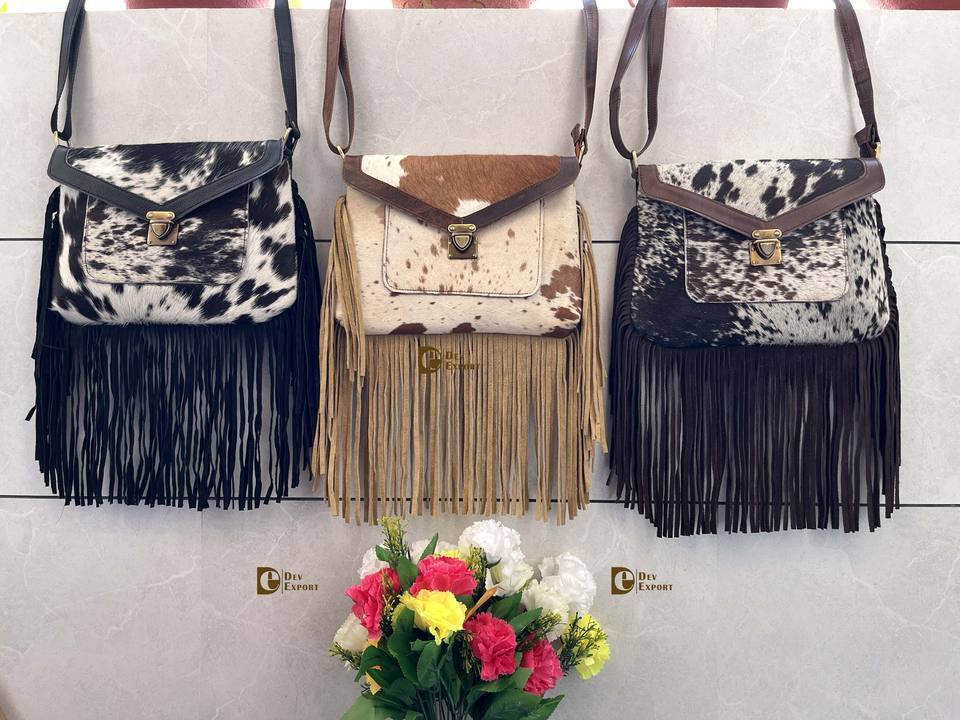 กระเป๋าสะพายหนังวัวสไตล์ตะวันตกมีพู่ห้อยกระเป๋าถือสไตล์ยิปซีโบฮีเมียนดีไซน์ใหม่พร้อมกระเป๋าขอบผมซ่อน