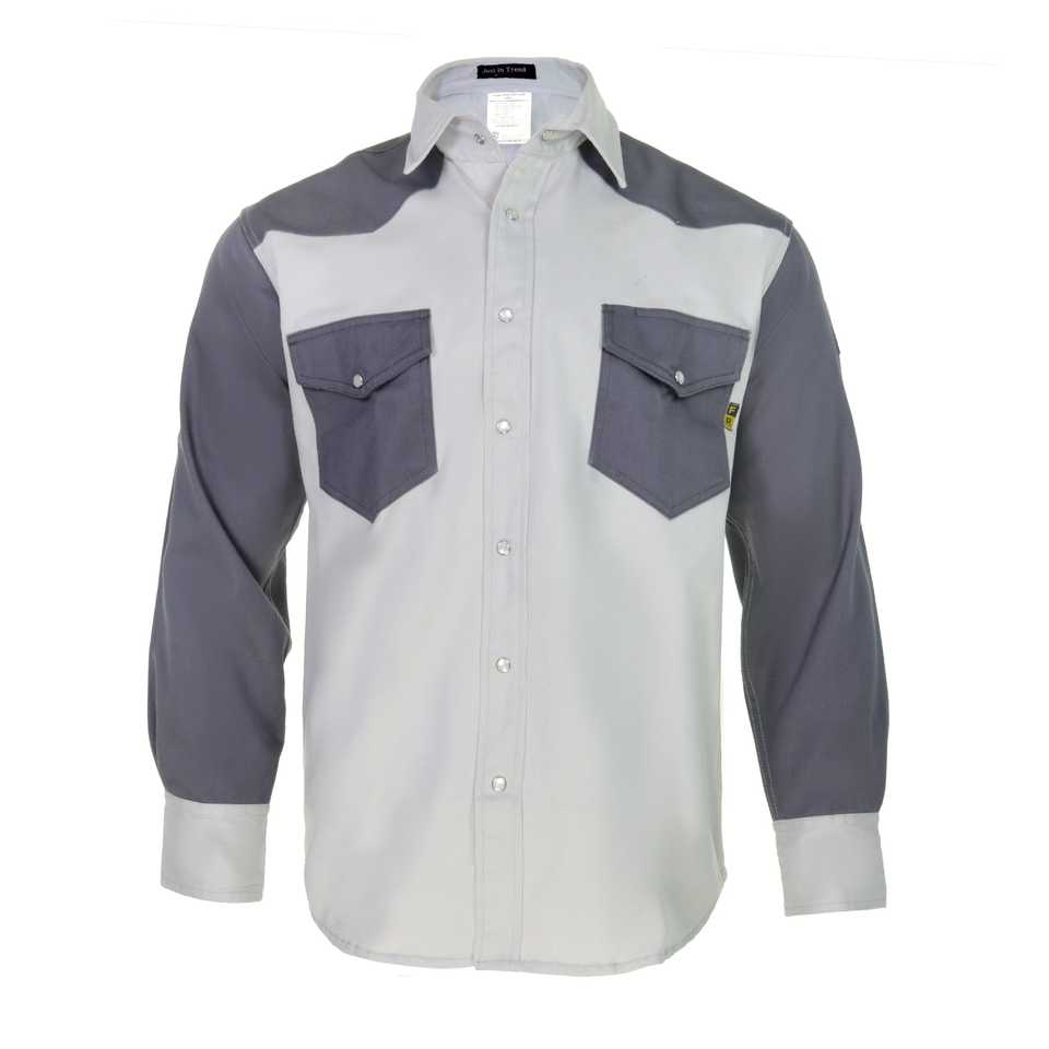 เสื้อเซฟตี้ป้องกันเปลวไฟสีเทาเข้ม-88/12สีทูโทนสีเทาอ่อน/เข้มเข้ม