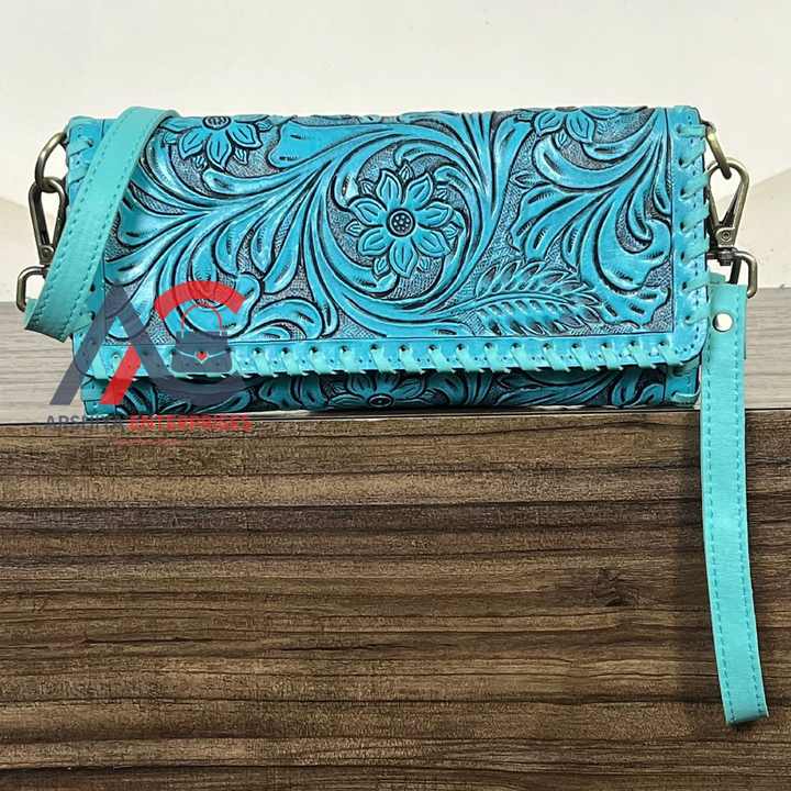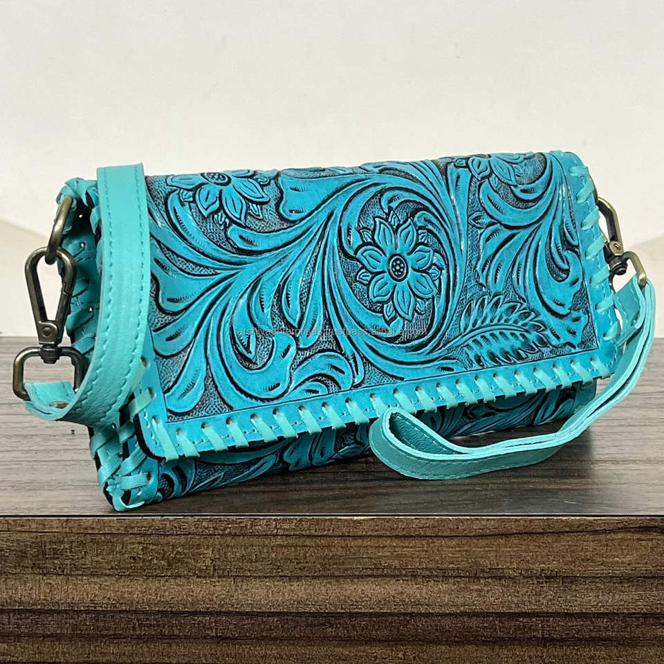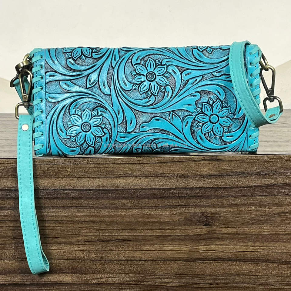 กระเป๋าหนังวัวแท้ลายดอกไม้สไตล์ตะวันตก วินเทจ แฟชั่นโบโฮ สไตล์อังกฤษ แบบพับสามตอน ขนาดเล็ก ป้องกัน RFID สำหรับผู้หญิง