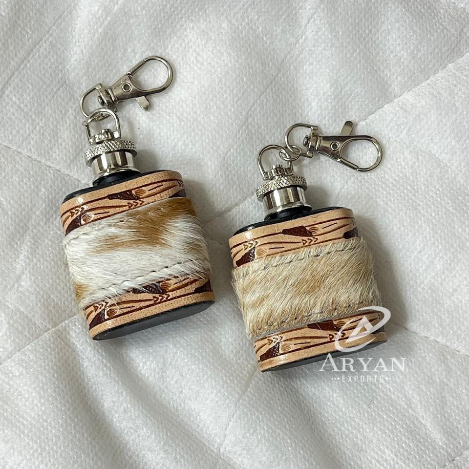 พวงกุญแจหนังแท้สไตล์ตะวันตก หุ้มด้วยหนังลายขนสัตว์ พร้อมกระติกน้ำขนาดเล็กน่ารัก ตกแต่งด้วยลายหนังแท้ เหมาะสำหรับเป็นของขวัญ