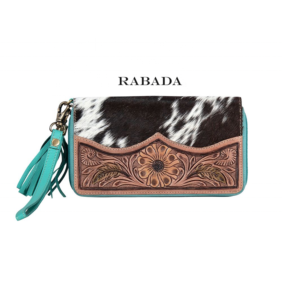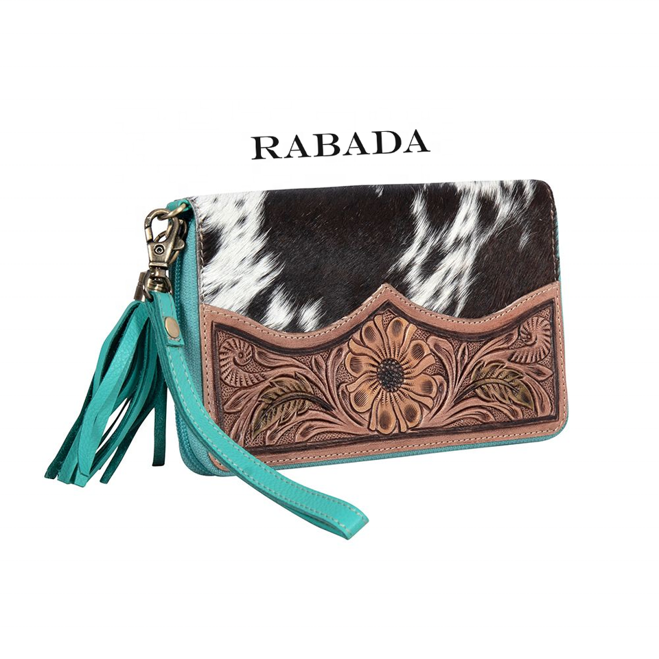 ผมหนังวัวกับคลัทช์แกะสลัก
