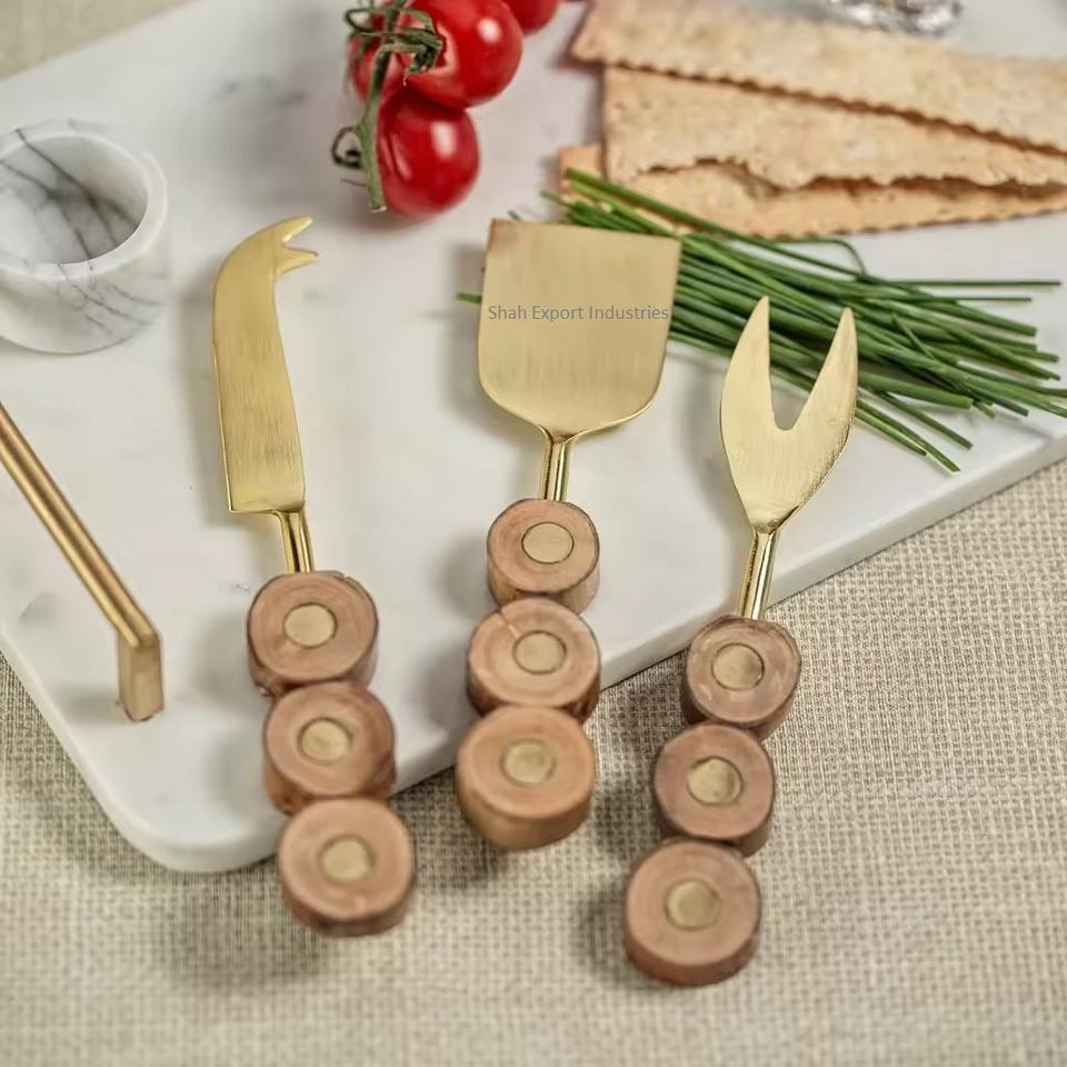 ชุดมีด้ามจับไม้ชุดชีสทองสไตล์ตะวันตกมีดปาดเนยชีสสำหรับวางบนโต๊ะ