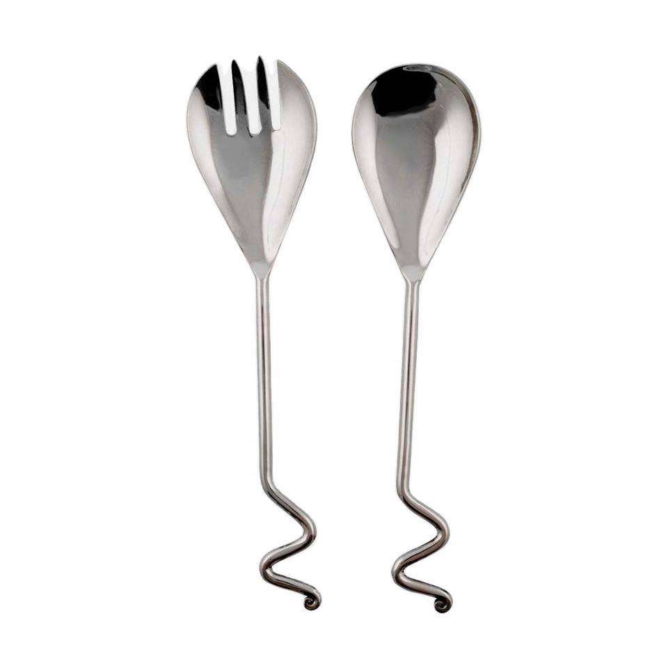 ชุดเครื่องใช้บนโต๊ะอาหารสไตล์ตะวันตก,ชุดเสิร์ฟสลัดสเตนเลสสตีลที่จับปลายแบบซิกแซกขัดเงาด้วยมือ