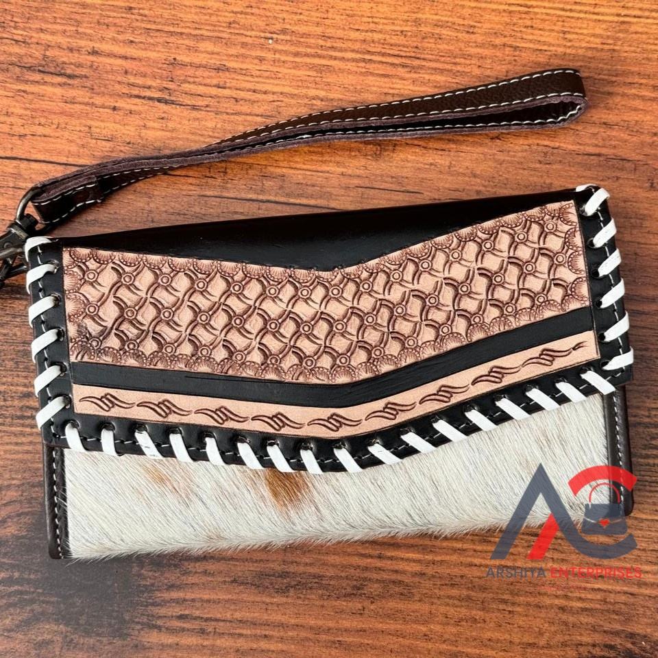คลัทช์หนังวัวขนสัตว์แบบตะวันตกกระเป๋าสตางค์หนังทำมือมีสไตล์ทันสมัยคลัตช์ออกแบบใหม่สำหรับผู้หญิง