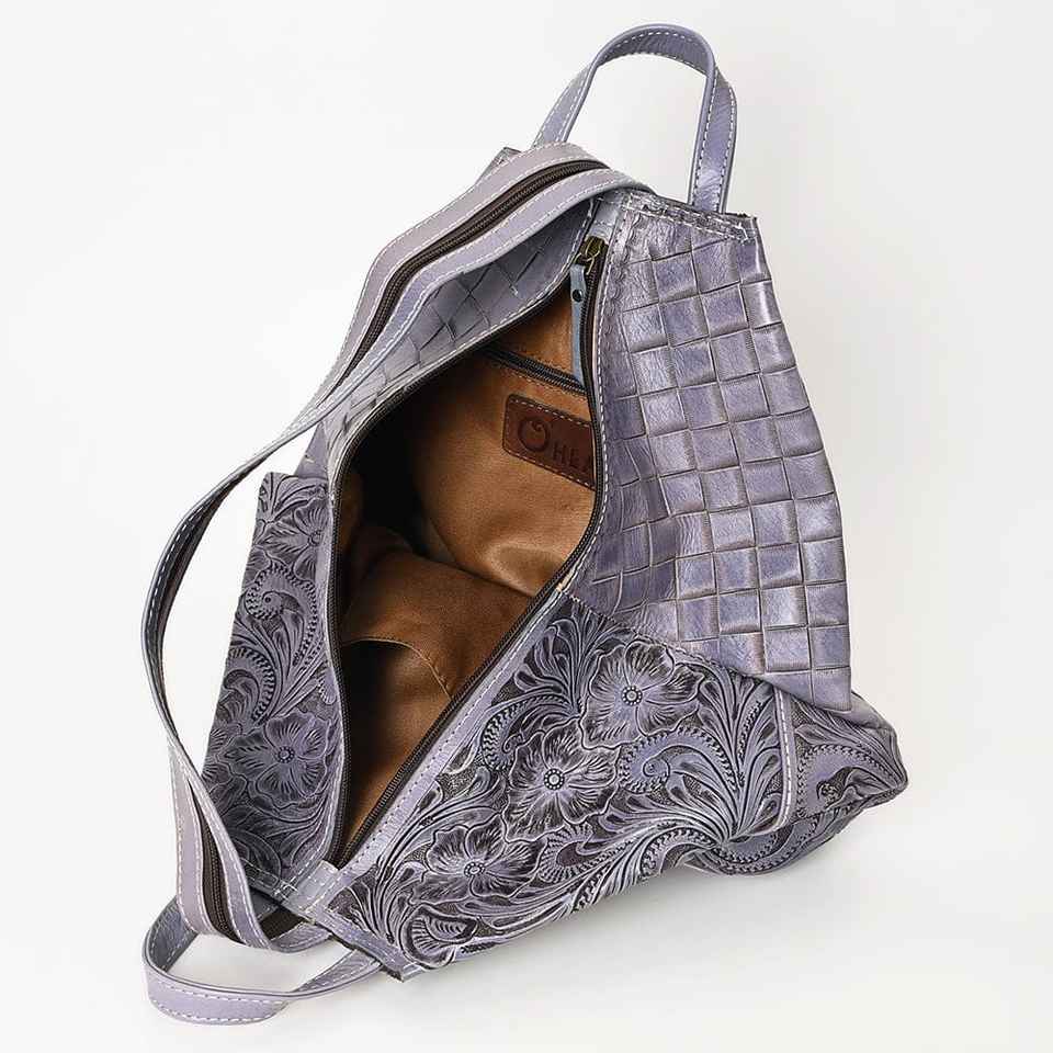 กระเป๋าเป้สะพายหลังแบบตะวันตกกระเป๋าหนังสไตล์โบฮีเมียนกระเป๋าหนังวัวสไตล์ตะวันตกออกแบบเครื่องมือลายดอกไม้กระเป๋าแกะสลักมือ